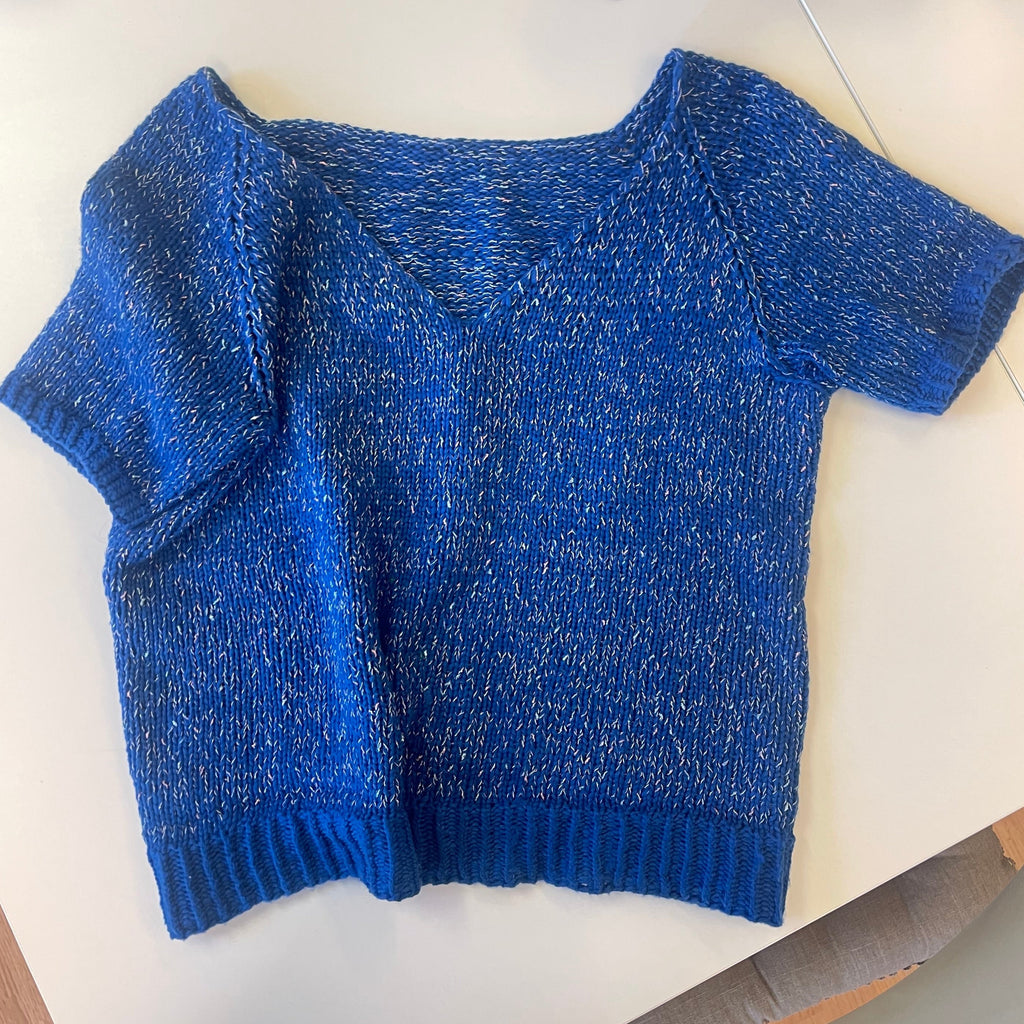 Det er et svært mykt, deilig og tykt bomullsgarn. Veldig godt å strikke med, og gøy å blande inn glitter tråd for en annen effekt.