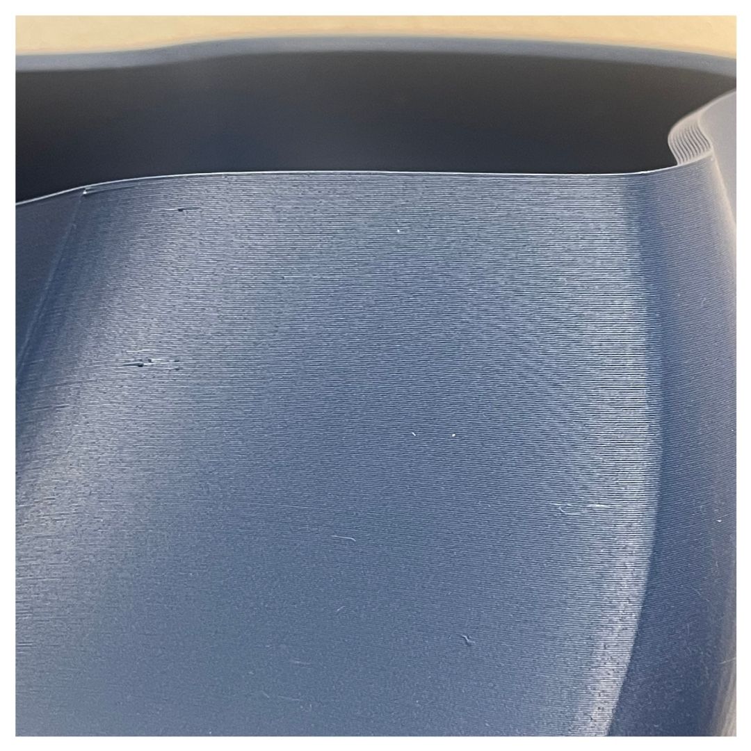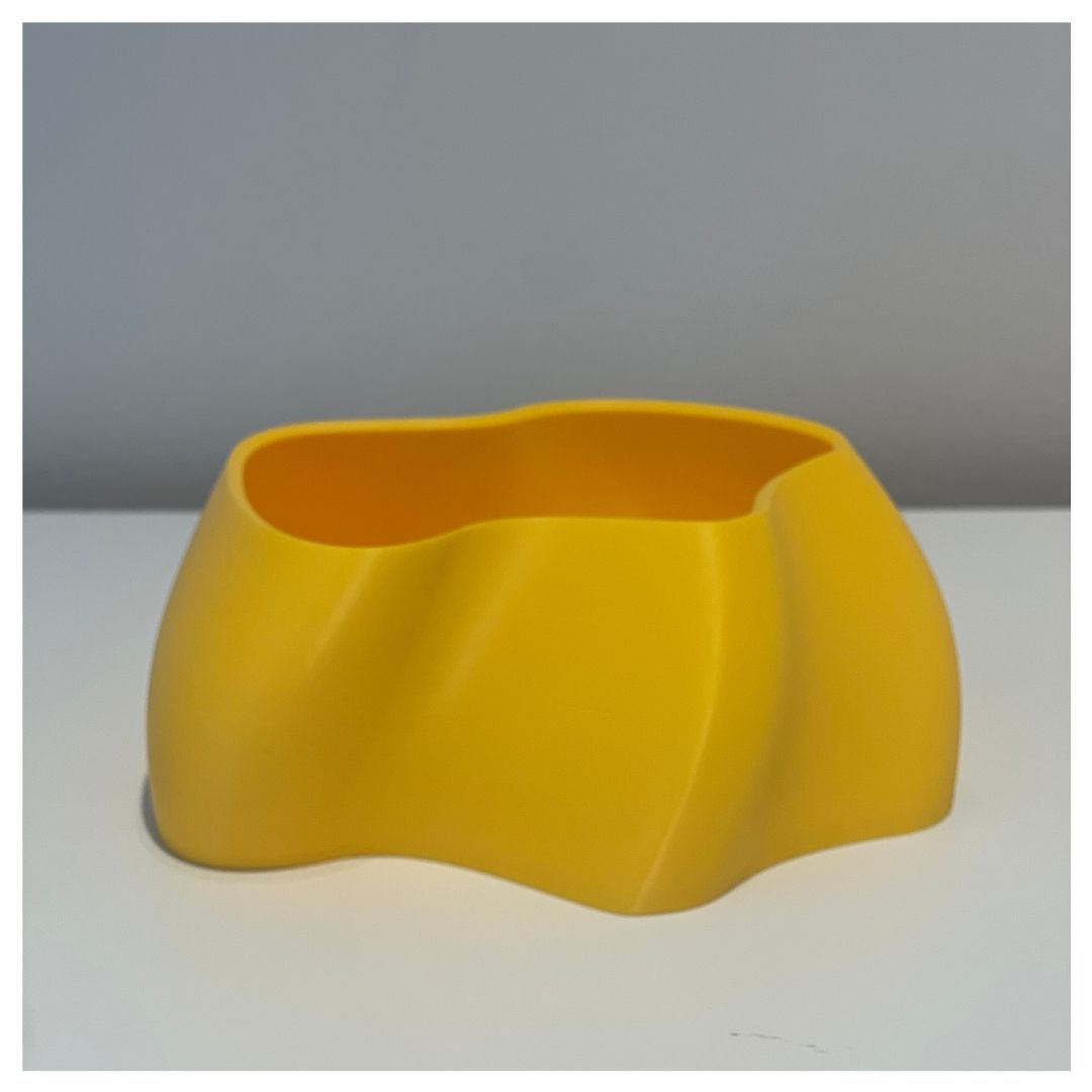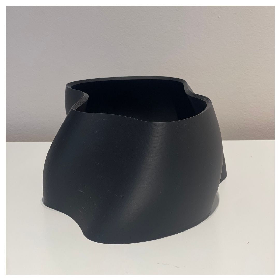 Materiale: Skålen er 3D-printet i PLA – en bioplast laget av fornybare råvarer som maisstivelse og sukkerrør. Når man 3D-printer, bygges formen lag for lag med tynne plasttråder i sirkler. Dette gir et unikt uttrykk, og små uregelmessigheter kan forekomme – noe som gjør hver skål helt spesiell.