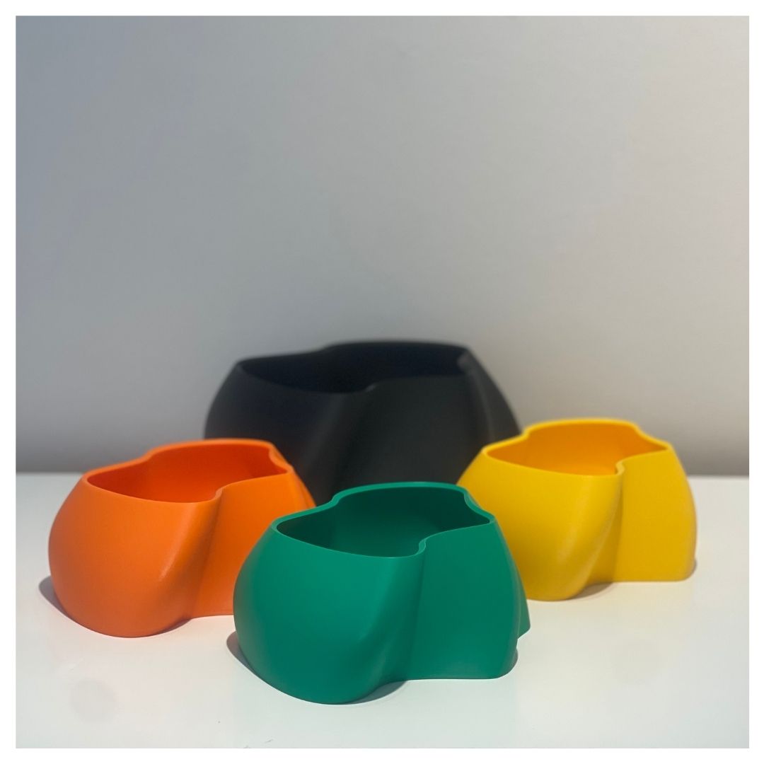 Bollen er laget i PLA, en miljøvennlig bioplast basert på fornybare råvarer. Den passer like godt i stua som på kjøkkenbenken eller hobbyrommet – og er et kunstnerisk element i seg selv.