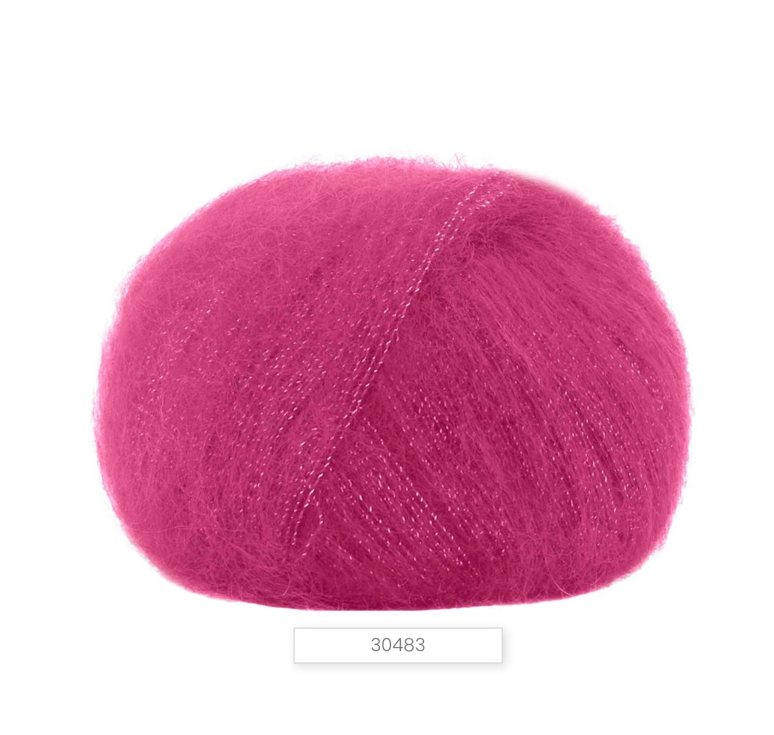 Silk Mohair Lux er et silk mohair garn med glitter effekt. Det gir er elegant effekt og et mer luxeriøst utrykk på plagget.